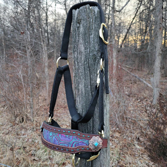 Floral Croc Metallic Hot Pink Inlaid Noseband on Halter