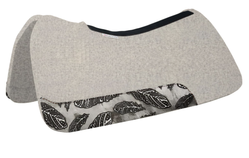 The Barrel Racer 5 Star Saddle Pad is a great pad for Barrel Racing and Smaller Saddles. It keeps your horse comfortable and your saddle in place allowing the best performance from your horse! The 100% pure virgin wool felt wicks away moisture, cleans up easily and stabilizes your saddle with limited cinching. Wear leathers provide protection and durability. Hand-made in the USA!
