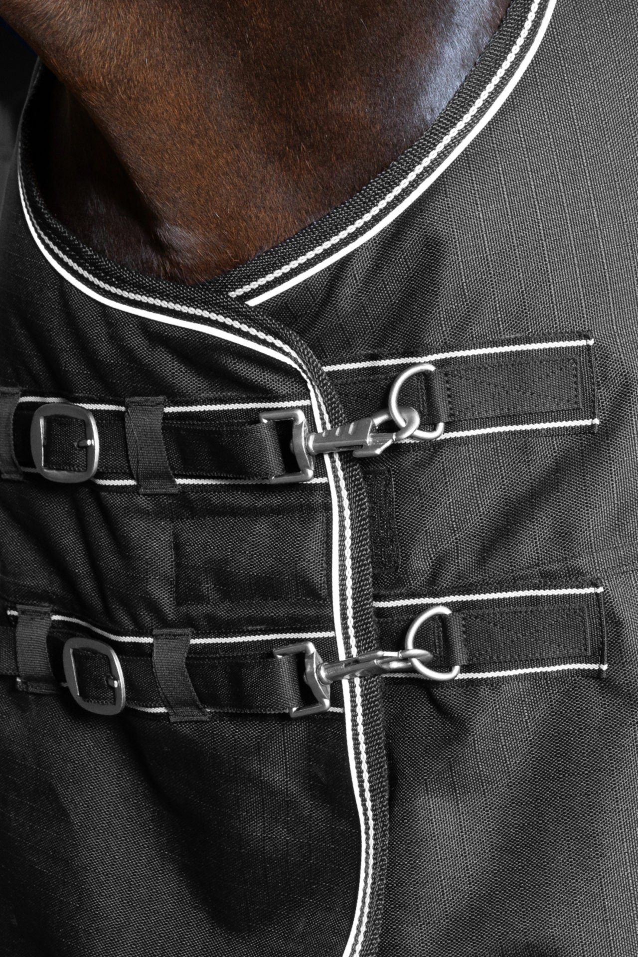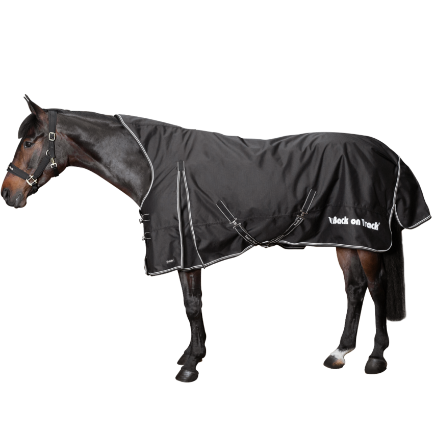 Perfect for cool weather and rainy days! Brianna is a high-quality turnout sheet that is durable, waterproof, and breathable. A versatile turnout sheet for fluctuating temperatures in changing seasons. Can be worn alone or layered over our Millie Stable Blanket to add extra warmth on colder days. High shoulder gussets give the horse good mobility. Brianna is designed with a high neck and a large tail cover for extra protection. Lining over the shoulders, mane, and tail avoids chafing. The tail strap has a plastic cover that makes it easy to keep clean. The Knitted Lined Brianna is particularly nice for horses that are body clipped, while the Woven Lined Brianna is great for all coats, clipped or not.