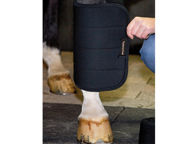 The Back on Track Royal Quick Wraps are a favorite among horse owners. Leveraging our Welltex technology, these all-in-one standing bandages may decrease swelling and help keep your horse’s legs cool and tight. Our state-of-the-art Welltex material uses the horse’s own body energy to create a soothing far infrared effect, allowing for increased blood circulation and relaxed muscles, tendons, joints, and ligaments. The Royal Quick wraps can be used for both injury prevention and recovery. These wraps can be left on overnight (after the initial introductory period) after a strenuous ride and can also be used when shipping your horse. They are great for both the front or hind legs and measure equal in size.