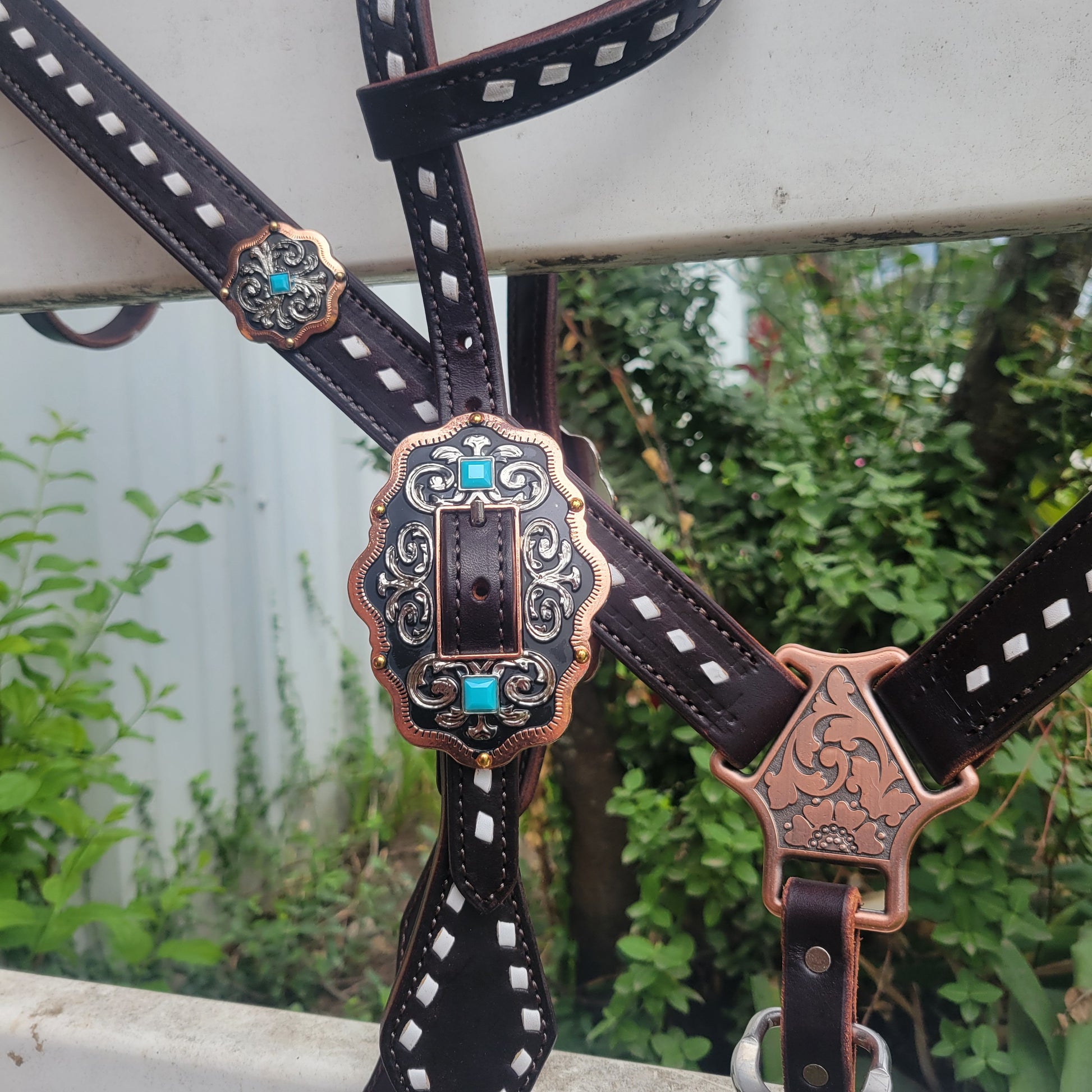 Belle's Copper White Buckstitch on Dark Chocolate One Ear Set