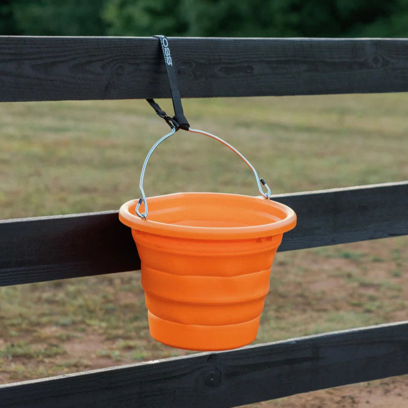 Our BOSS™ Bucket lays flat at just 3 inches tall, making it the most compact equine bucket ever made. Great for travel and storage, you can stack 6 of our buckets to equal the height of one regular bucket.
