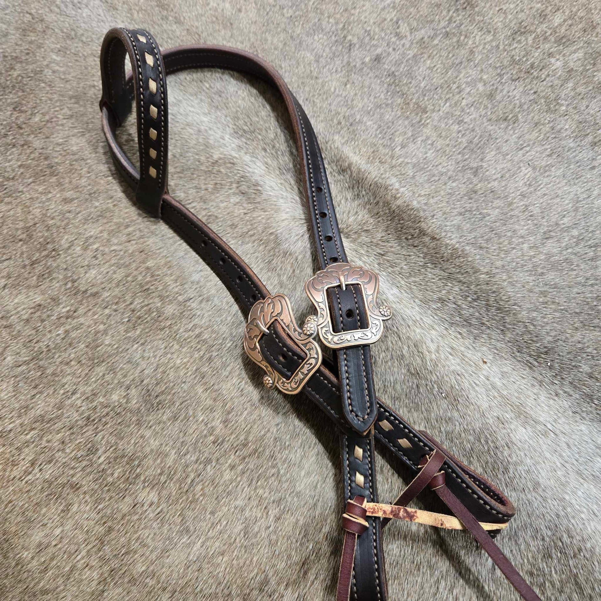 Rose Gold Buckstitched Short Cheek One Ear Headstall