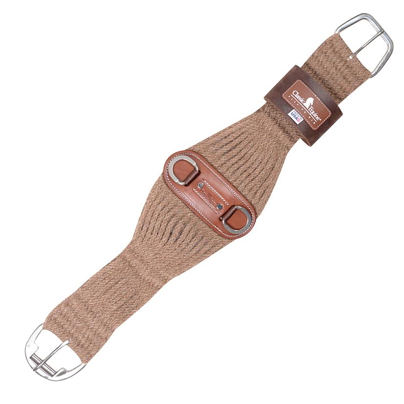 This is a roper cinch that distributes pressure and is made from a natural material that is softer than cashmere. This 100% alpaca cinch is resilient, strong, and hypoallergenic. Your horse will be able to move in this cinch without encouraging galling. This roper cinch comes with the same great stainless steel hardware and quality leather you have come to expect from Classic Equine.