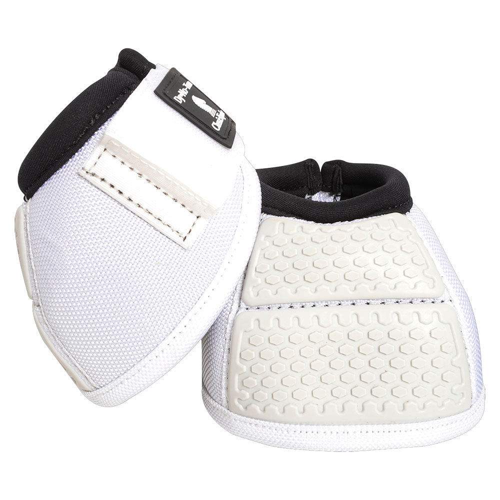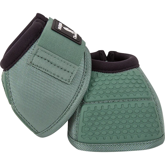 The Flexion No-Turn Bell Boot is made of water repellent and stain resistant DynoHyde covering and a dense shock absorbing center with soft jersey lining. Flexion technology on the back panel is UV, impact, and wear resistant. Contoured fit and reinforced double hook-and-loop closures keep boots in place.