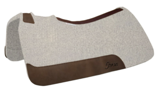 The Barrel Racer 5 Star Horse Saddle Pad is a great pad for Barrel Racing and Smaller Saddles. It keeps your horse comfortable and your saddle in place allowing the best performance from your horse! The 100% pure virgin wool felt wicks away moisture, cleans up easily and stabilizes your saddle with limited cinching. Wear leathers provide protection and durability. Hand-made in the USA!