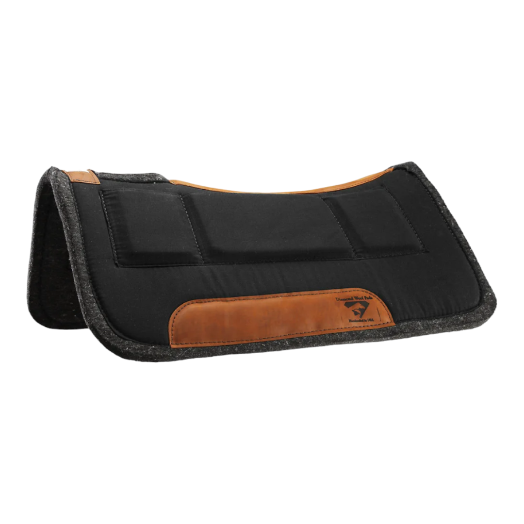 Made with "ranch tough" 1" wool felt. The contoured spine has a wither relief notch & is reinforced with leather. Great pad for any type of riding. Thick and sturdy enough for the hardest working horse.