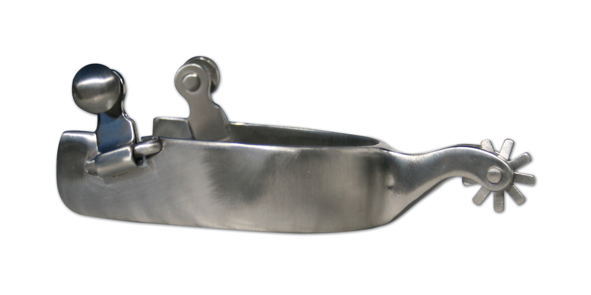 These polished steel spurs have a 1_ shank and an effective nine-point rowel. Shank: 1 1/2" Band: 1
