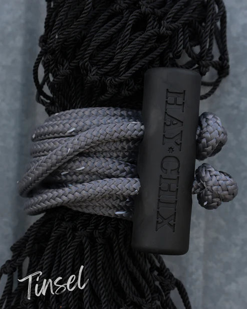 The Hay Chix® Half Bale Net (formerly known as 'Mini Net') attaches easily to a trailer, eye hook, fence or tree, it's perfect for keeping your feeding program on track while on the go. This net holds about 1/2 of a small square bale (4-6 flakes.)