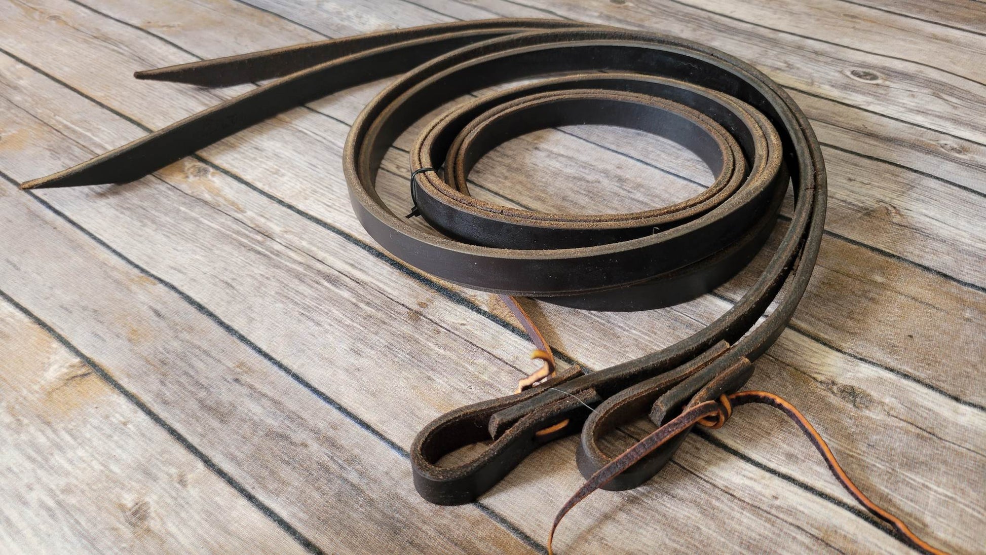 Thick cut Chocolate bridle leather, hot oiled and hand rubbed & conditioned to perfection! These reins are made from the same leather as several of our headstalls, and are soft in the hand the second you pick them up.