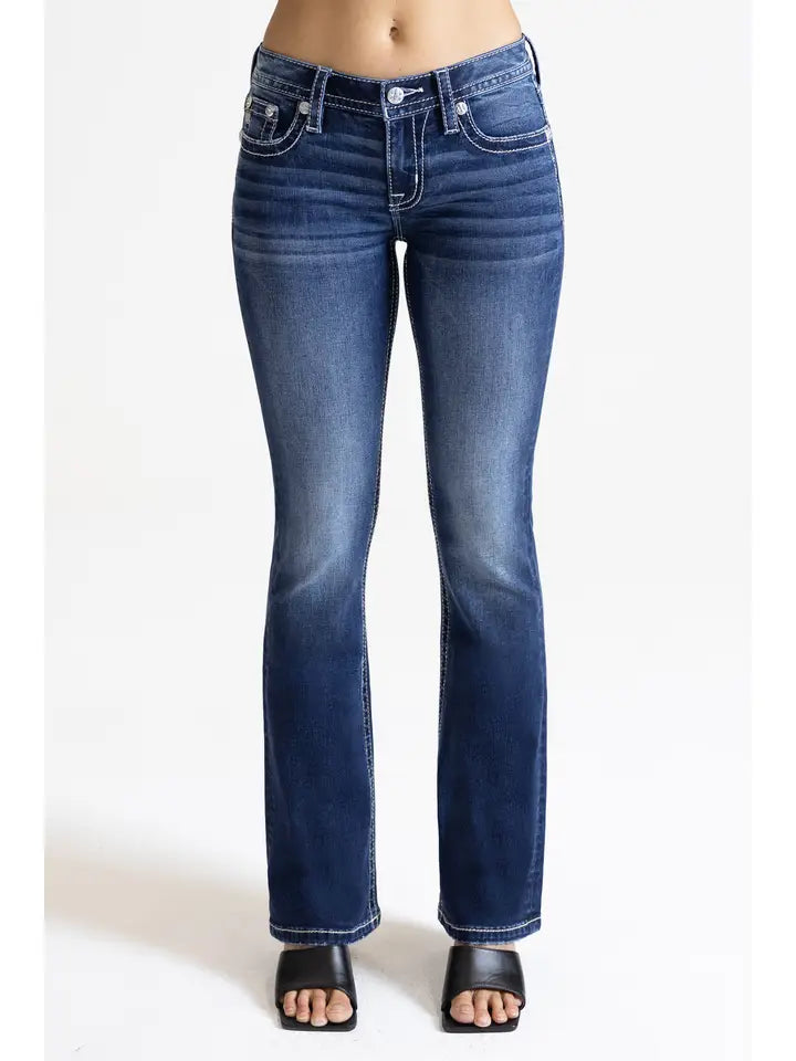 Miss Me 34" Embroidered Americana Mid Rise Boot Cut Jean