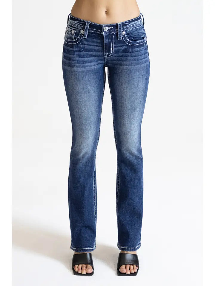 Miss Me 34" Embroidered Mid Rise Boot Cut Jean