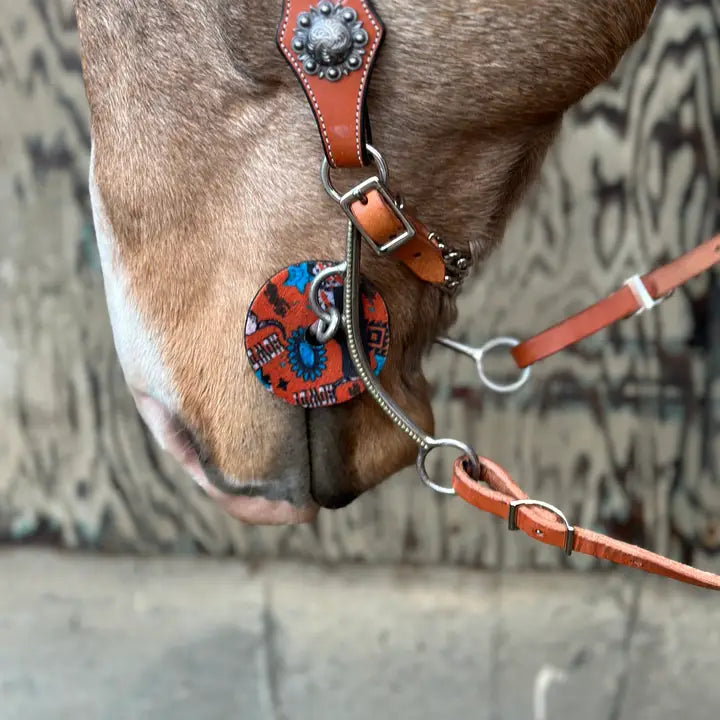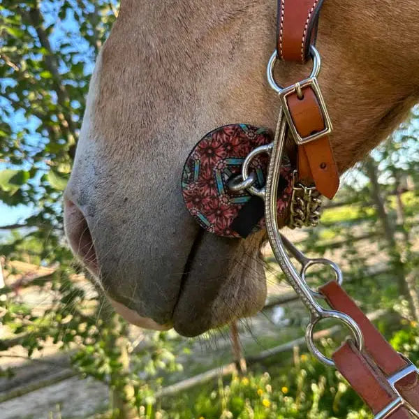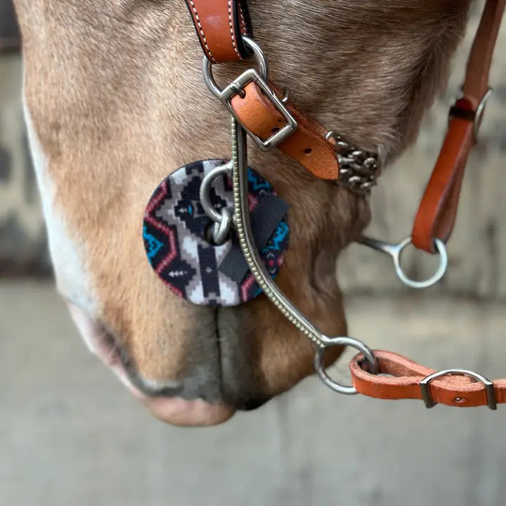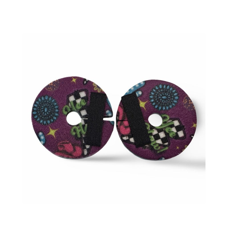 Neoprene bit guard with velcro closure. 3.25" diameter with .5" center hole for bit 5mm thick in our vibrant prints. Sold as a pair.
