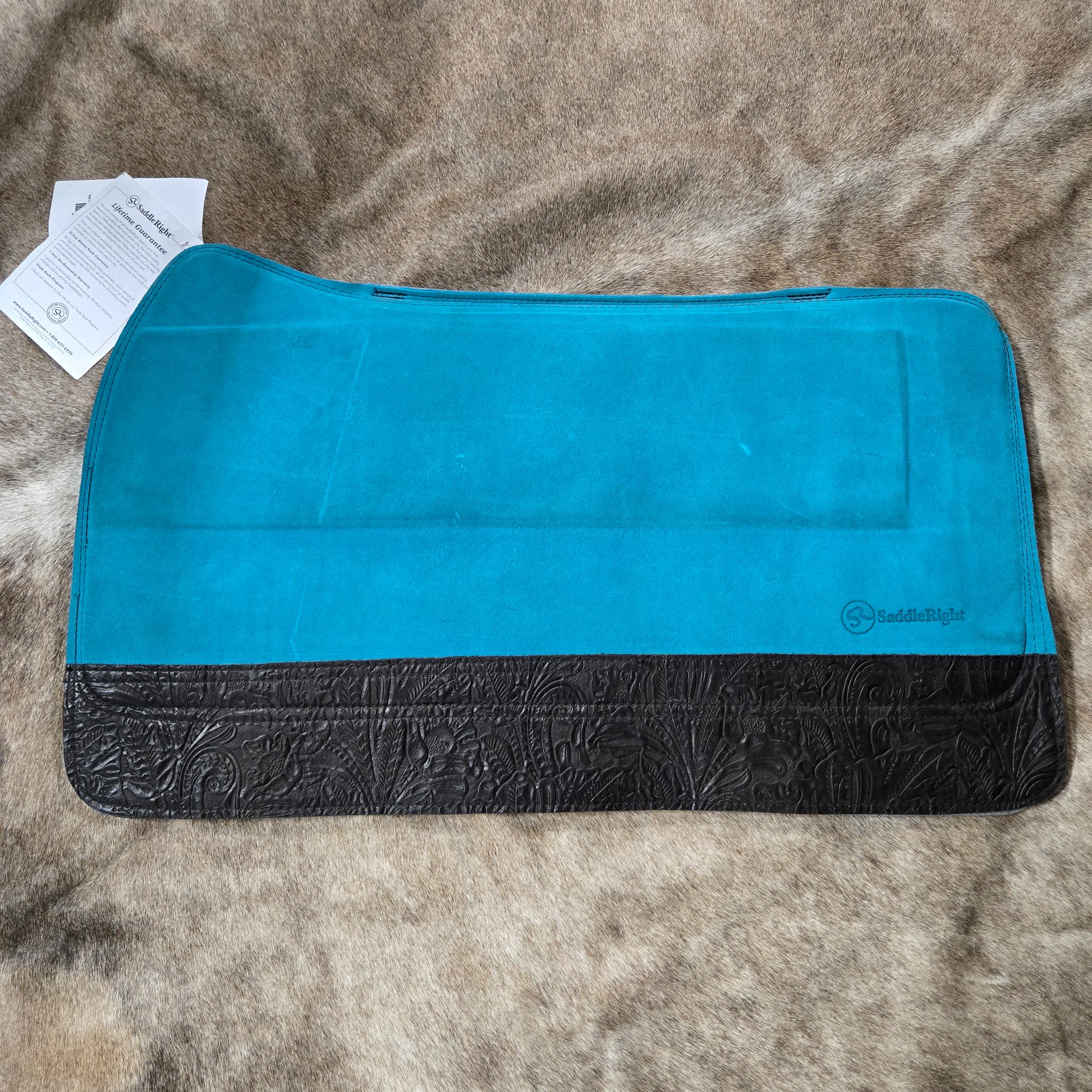 This pad is a 29 x 32 Western Deluxe. It features a Jade suede top and chocolate floral embossed wear leathers. This pad is the Standard thickness and measures 5/8" thick through the bars.