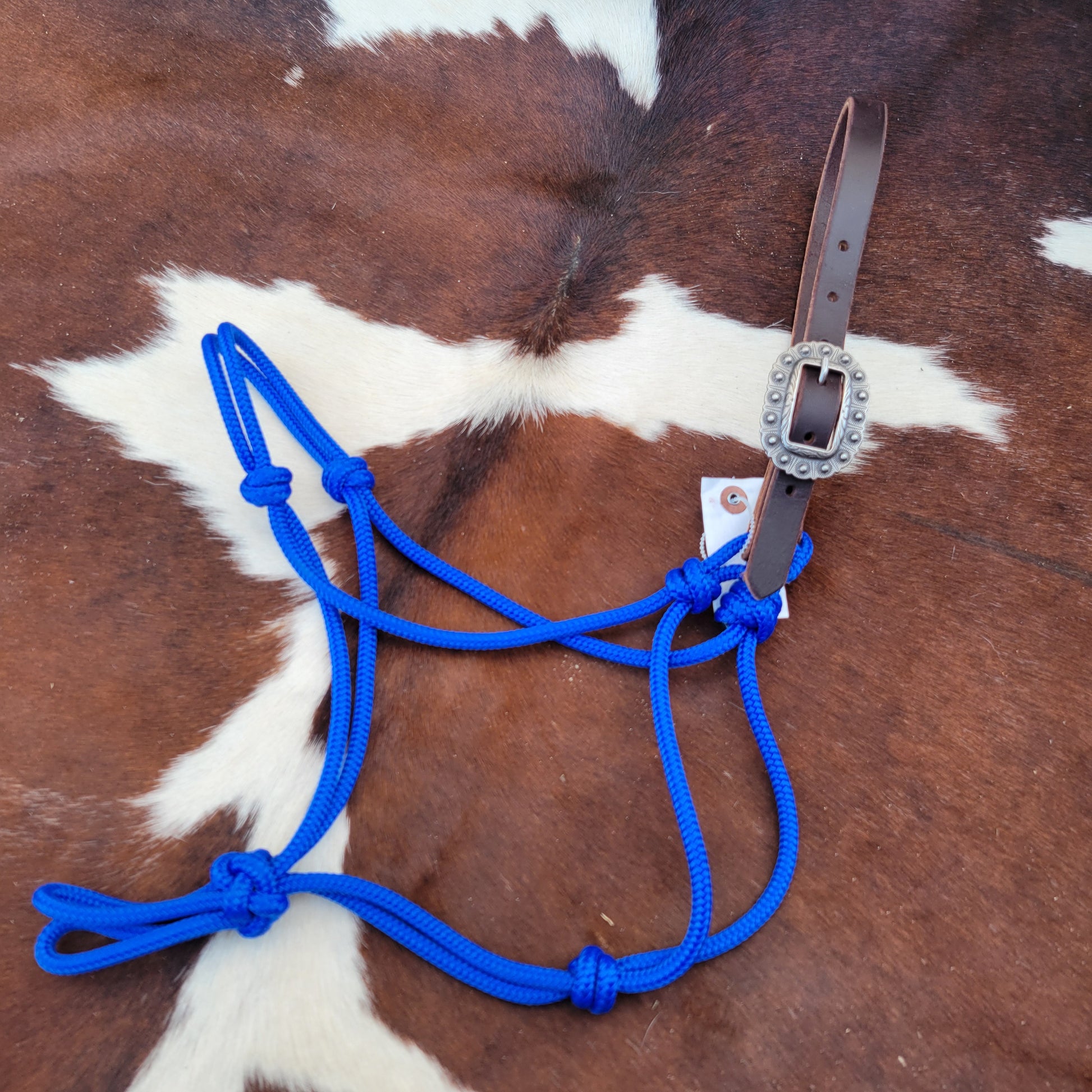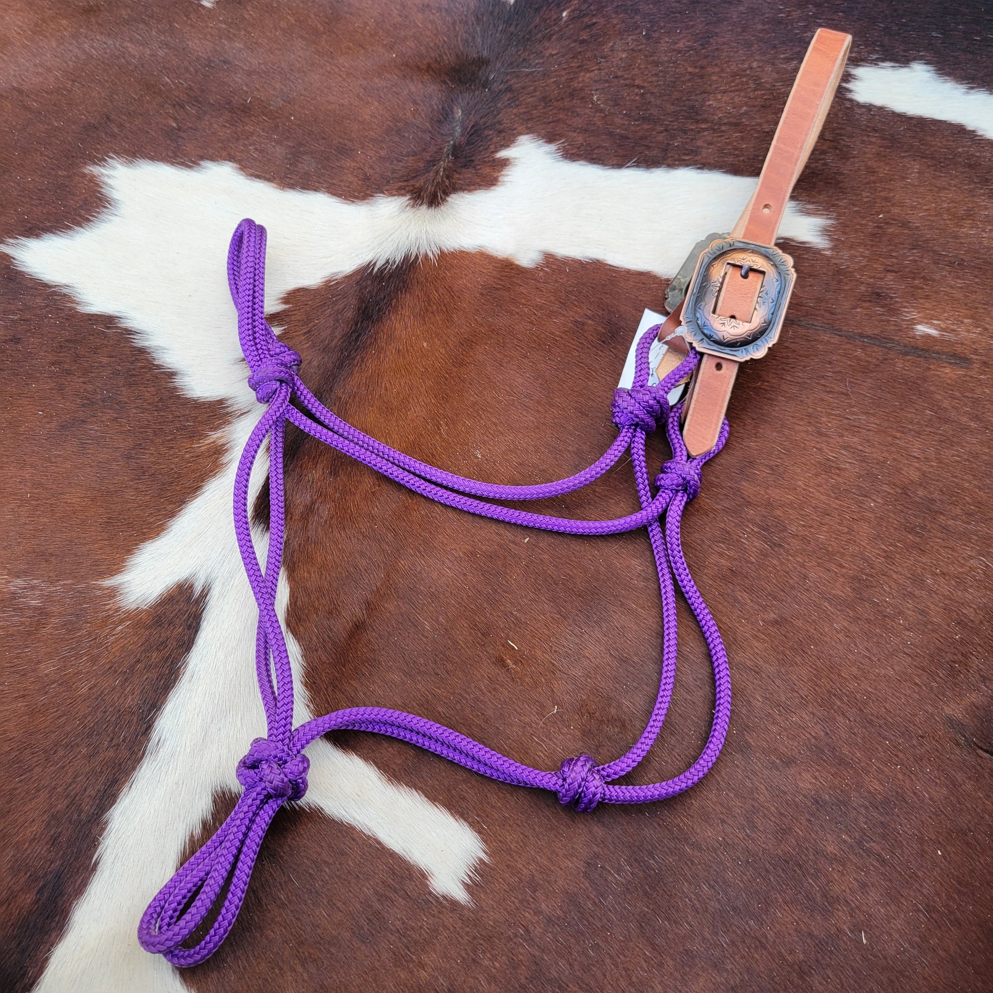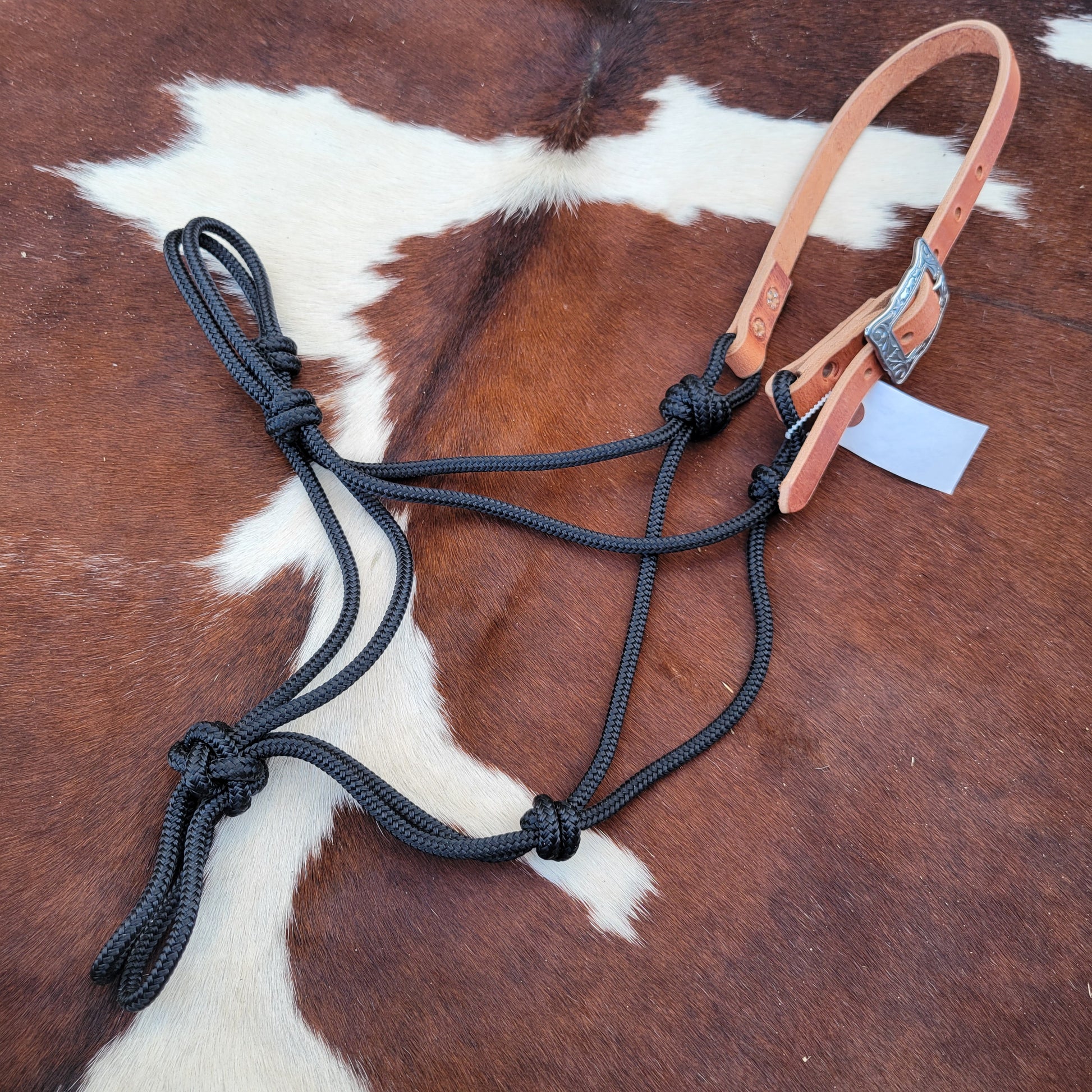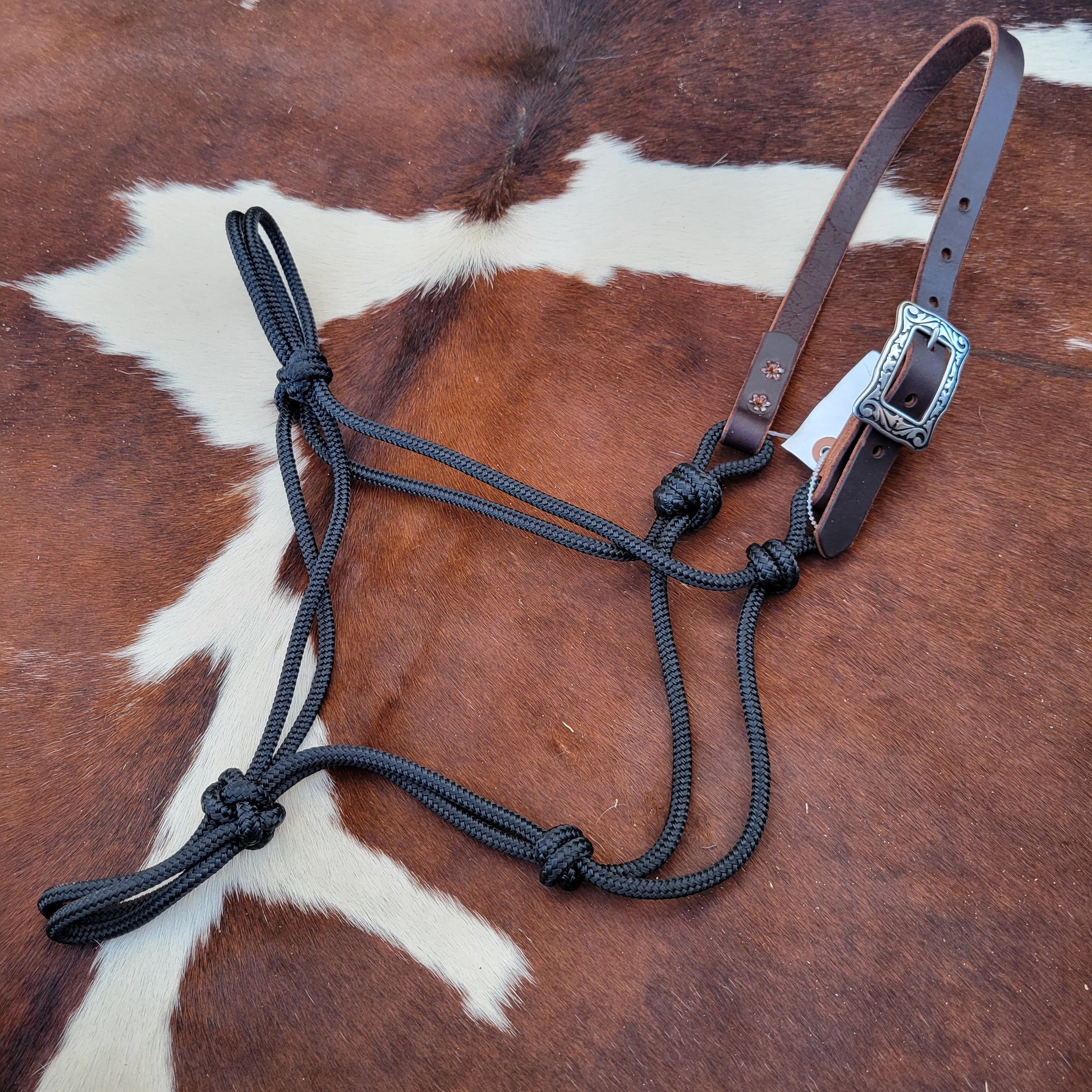 This rope halter is made from quality soft yatch line for an excellent feel. The crown features white buckstitch and is doubled and stitched for durability. Soft, conditioned leather giving this halter added flair. Jeramiah Watt buckle to finish it off!