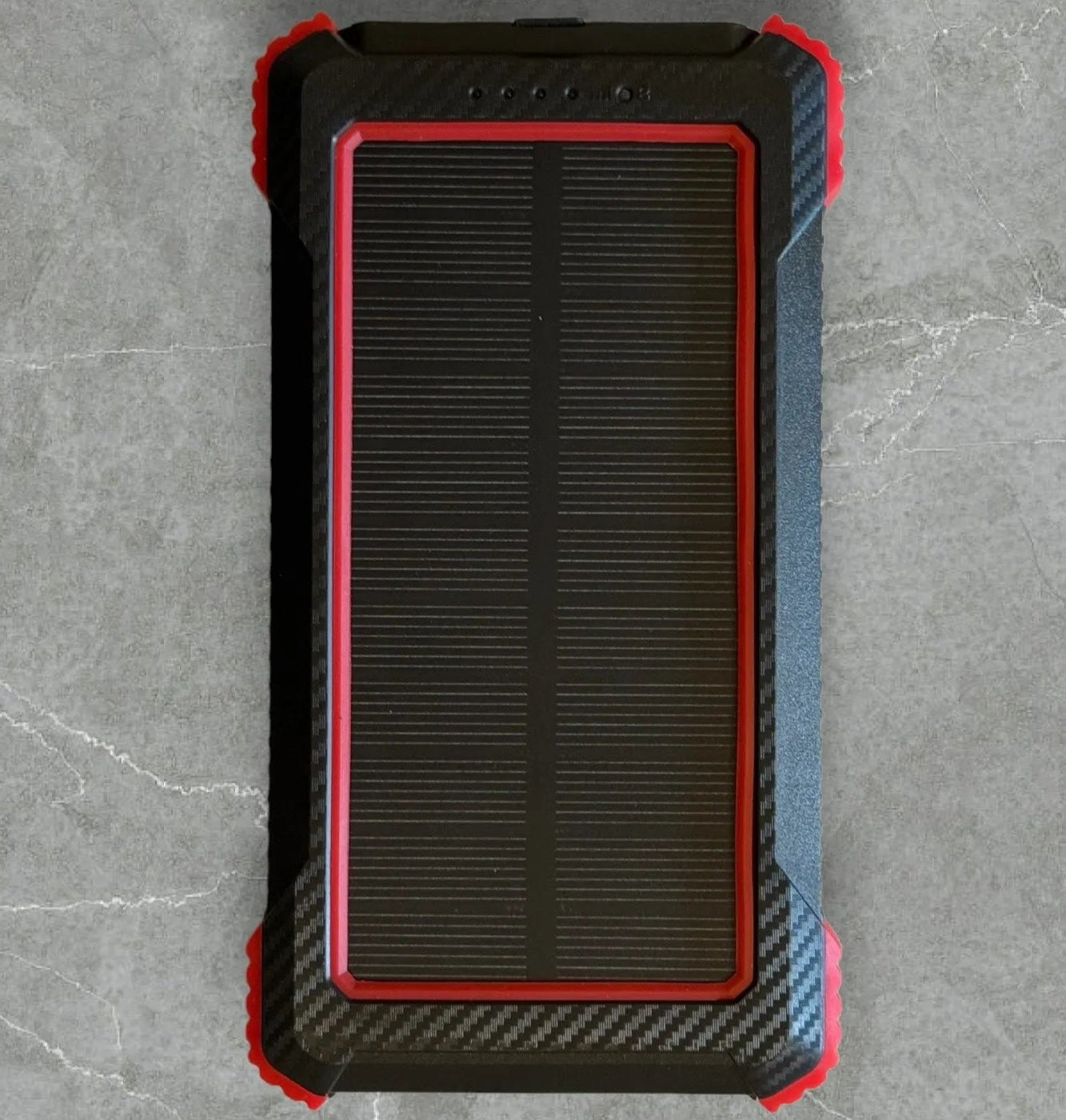 5v 2.1a waterproof solar rechargeable power bank with 2 usb ports, Intended to power VersaWrap, or to recharge all Redline products that utilize an internal battery. 6.1 x 3.1 x .79 inches.