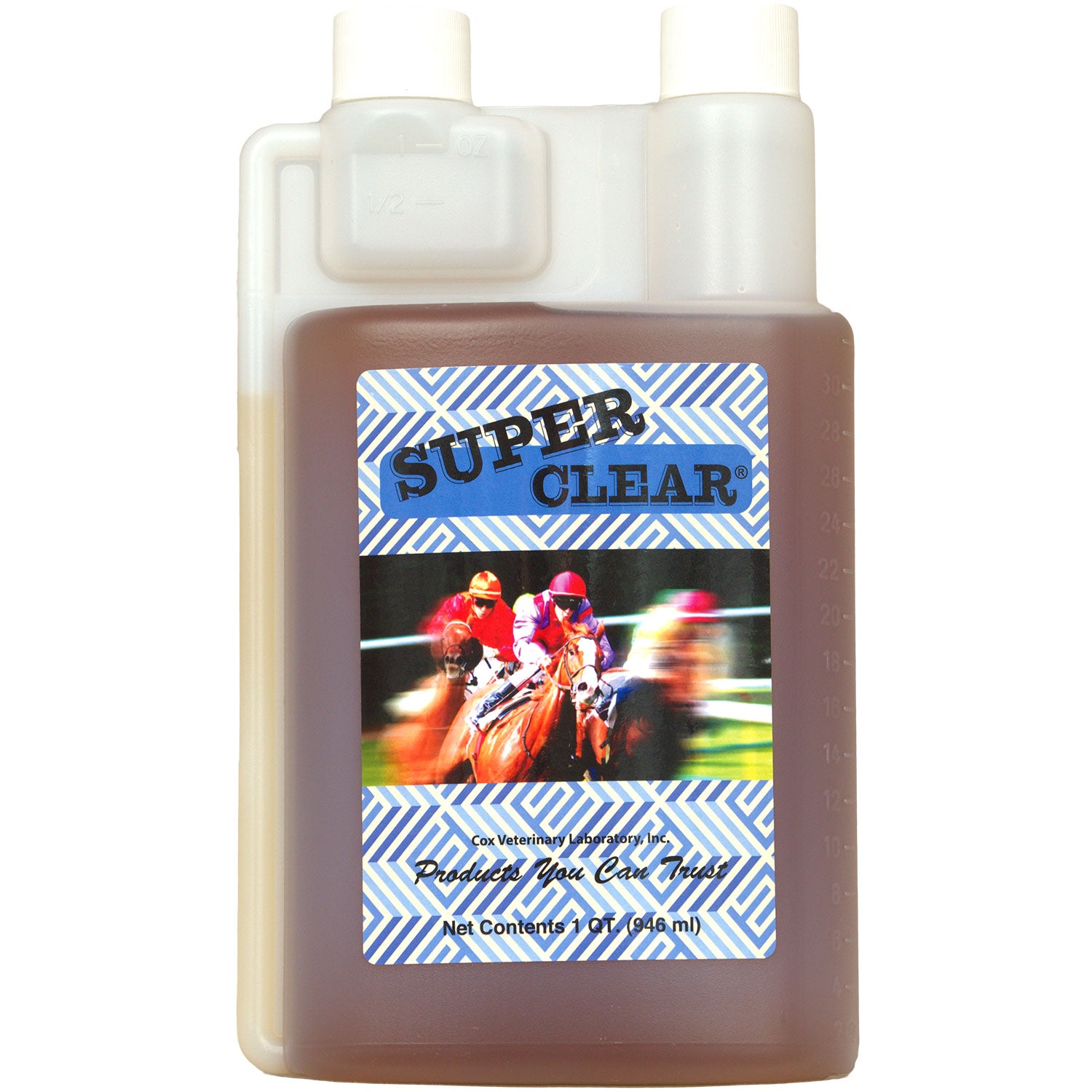 Use Super Clear liquid to help clean, soothe and completely open a horse’s air passages prior to competition. Helps clean mouth area of dust, pollen and other airborne agents. Studies have shown horses with clear airways are able to breathe more easily, achieve maximum air circulation during exercise, and perform to their highest potential in competition.