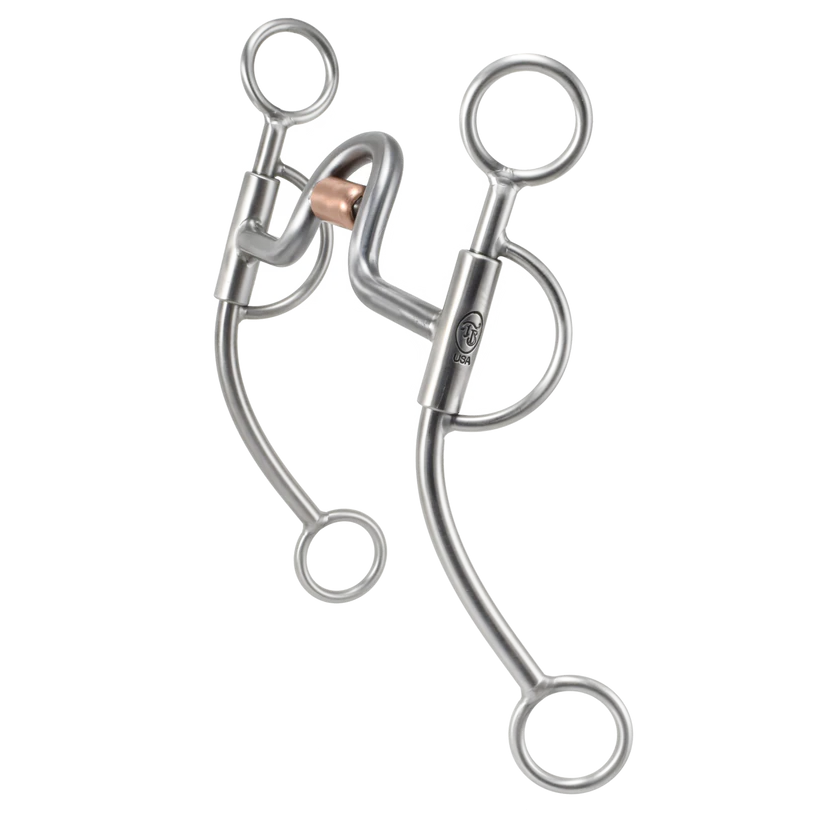 This beautifully crafted Baseline bit features a Long© shank. The mouthpiece is our Clearwater© with an inset copper roller. This shank measures 8" overall.