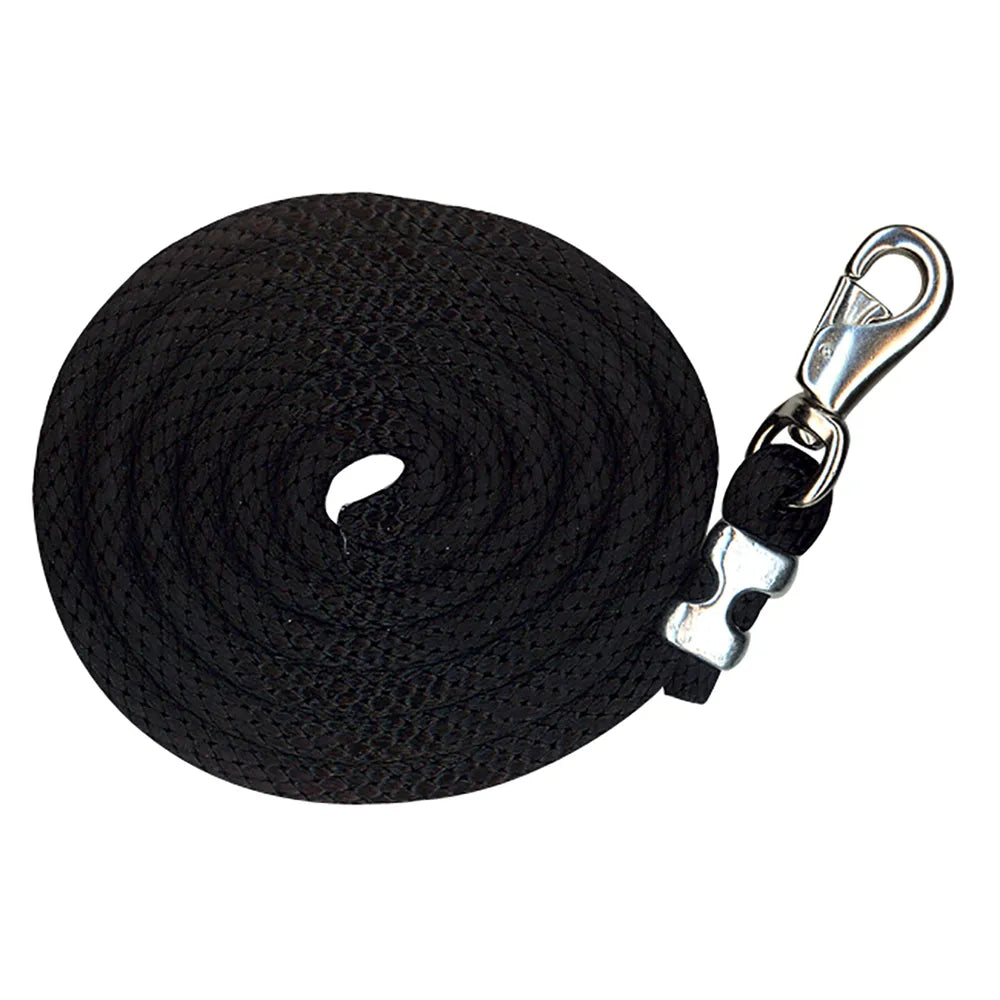 Solid, braided multifilament polypropylene with #3142 bull snap & heavy clamp. 8 ft long.