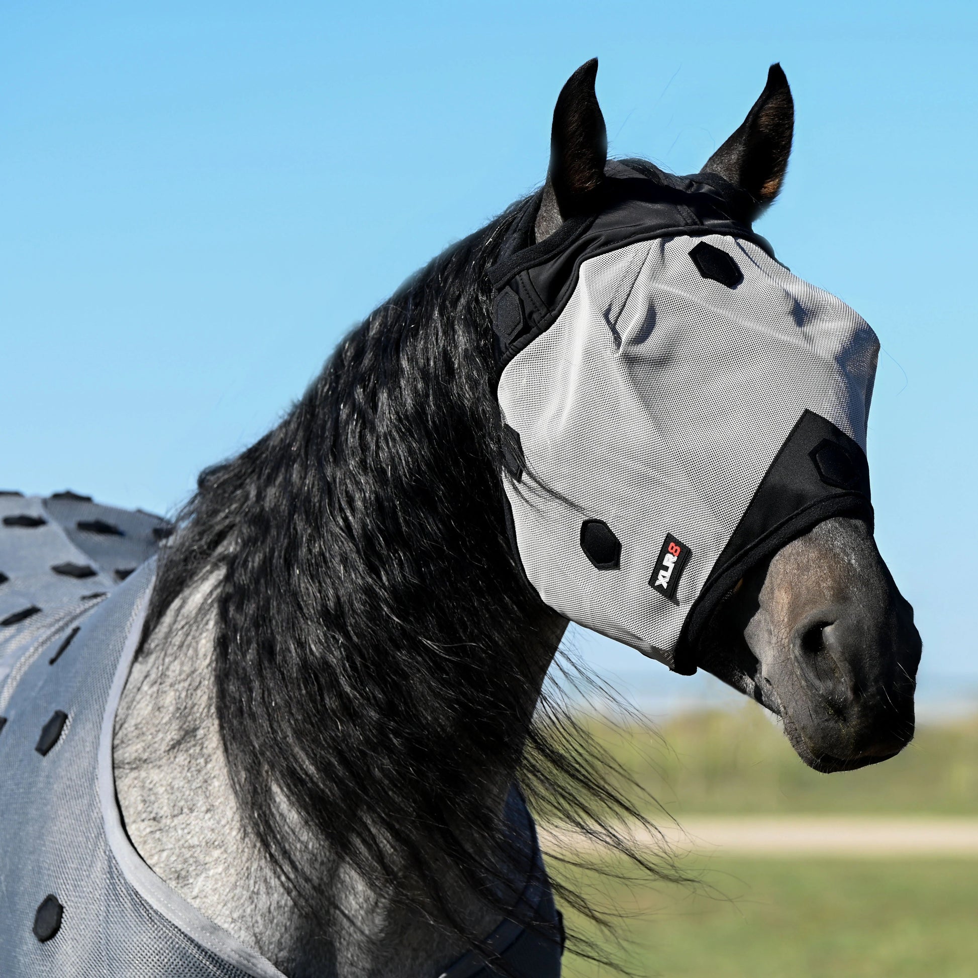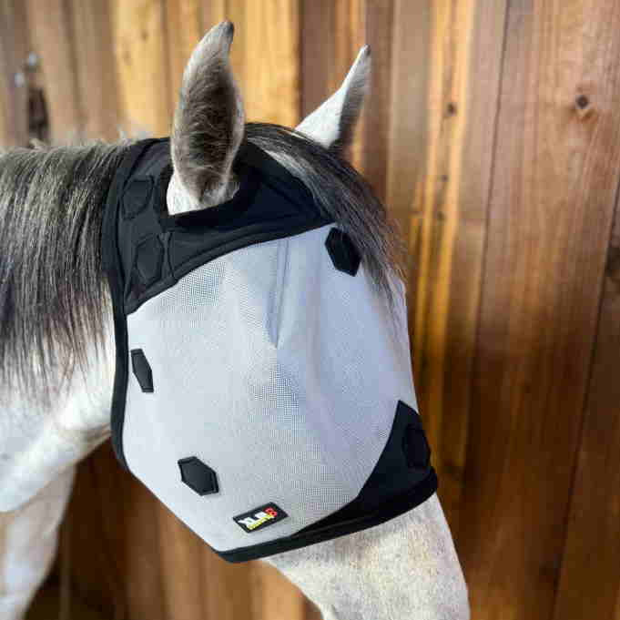 Far Infrared Ceramic technology combines with magnetic therapy at critical acupressure points, across the poll, and TMJ. Darts keep mesh well away from horse's sensitive eyes. Mesh ear coverage. Can be used during hauling, stalling or turnout. Provides protection from harmful UV rays and insects.